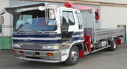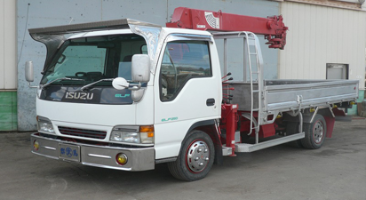 運転席と荷台の間に小型のクレーンが設備されているため、人の力ではどうにもならない重さのものを比較的容易に荷揚げ、荷降ろしできます。コンテナや工場で出たゴミなど、大きくて重量のあるものを積載、運搬するのに向いています。